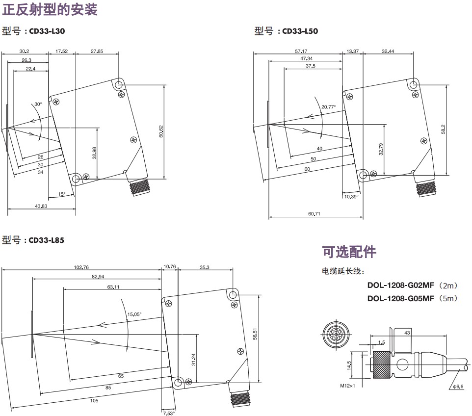 CD33系列激光位移傳感器CD33-30 -50-85 -120 250-L30NA-L50NA -L85NA