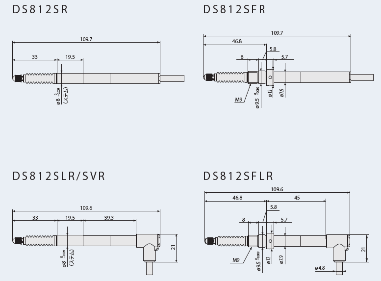DS800S Series的型號:DS805SR、DS805SFR、DS812SR、DS812SFR、DS805SLR、DS805SFLR、DS812SLR/SVR、DS812SFLR DS800S Series的尺寸圖: DS805S尺寸圖