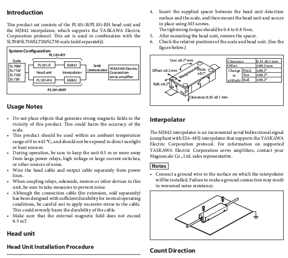 PL101-RY/PL101-PHY支持安川YASKAWA驅(qū)動器串行接口磁柵尺,高精度每米0.003mm,直接連接CN2接口。