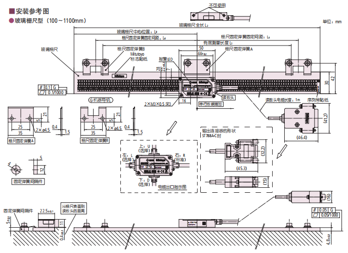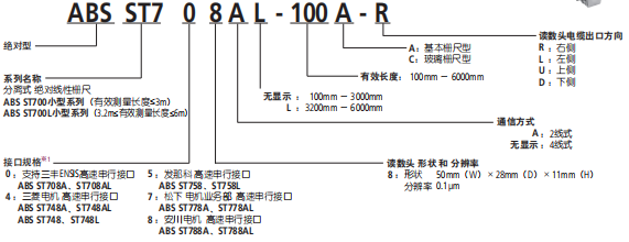 產品介紹ABS ST700/ST700L電磁感式絕對光柵尺 ,量程6米,顯示精度0.1um/0.5um/0.01um/0.05um高頻率及穩定性。 ABS ST700系列特點: 1、抗污染強 2、適合線性電機 ABS ST700系列解決方案: ●線性電機用反饋?光柵尺 1.因為是絕對式光柵尺 適用于日本廠家伺服放大器接口