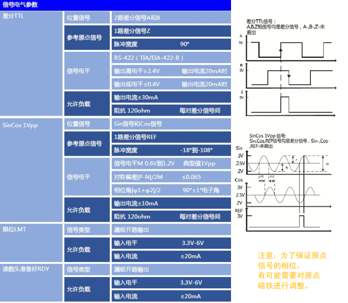 SinCos 1Vpp、差分TTL信號接口。內(nèi)置 REF 原點與限位信號。