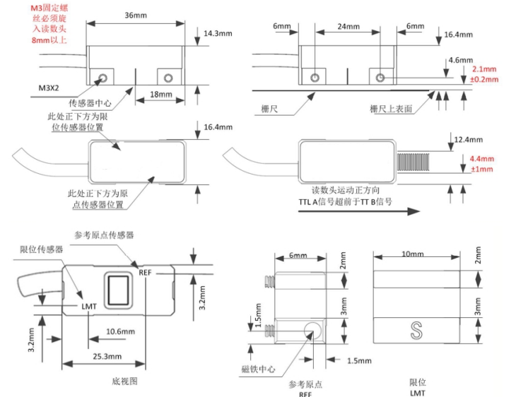極強的抗污染能力:大面積單場掃描技術(shù),大于100條柵線同時掃描,有效降低灰塵等其他污染物帶來的影響。帶寬,低細分誤差:內(nèi)置ADC和濾波電路,提供的帶寬、的分辨率、動態(tài)響應(yīng),更低的細分誤差。自動增益控制,自動糾偏:自動增益控制、自動糾偏電路與算法,提供更穩(wěn)定的信號輸出。多色指示燈提示信號強度,方便安裝。