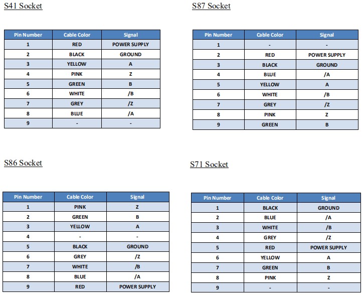訂貨規格: ![]() 產品尺寸圖: ![]() 插腳連接: ![]() 在左邊的平板電腦中,給出了傳感器輸出信號的電纜顏色。如果控制電路適合于非輸出信號(/A,/B,/Z)的線路驅動傳感器,則必須將其添加到系統中。如果它不合適/A,/B,/Z信號電纜必須固定為單獨絕緣。別忘了這些邊緣也有電。
