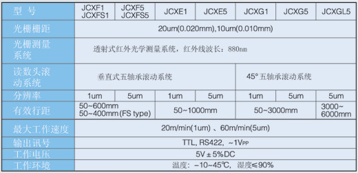 | JCXF0.5 | 0.5μm | 50~600mm | 10m/min | ±5μm | ±3μm | ±8μm | ±5μm |