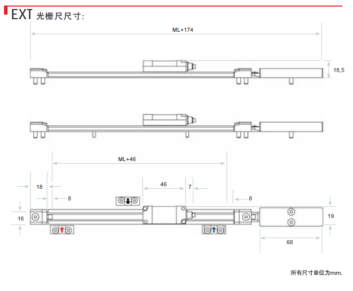 非接觸式光柵尺用于高精度場合每50mm一個參考零點,可通過磁選通開關選擇采用高抗腐蝕、高反射性的不銹鋼帶鋼帶導向支架,背膠安裝或者螺釘緊固極限開關和報警信號